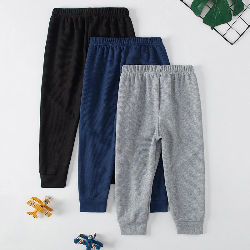 1/3 Pcs Children's Waffle Solid Color Sports Pants Boys Casual Joker Harun Pants Elastic Waist Running Pants Girls Fashion Pants