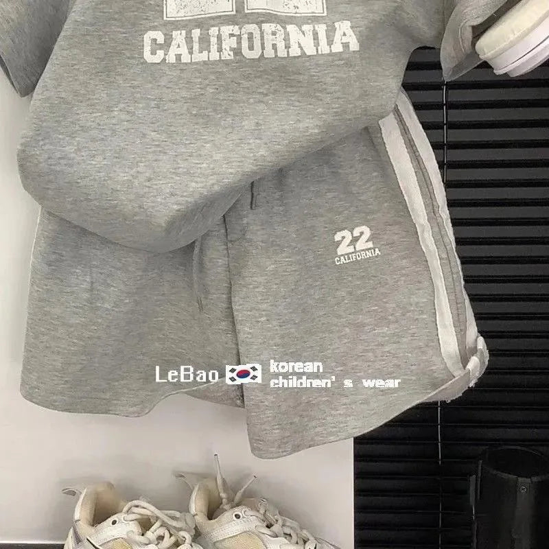2025 Summer Korean Kids Boys 2PCS Clothes Set Short Sleeve Letter T-shirts Sports Shorts Suit Toddler Baby Bous Outfits
