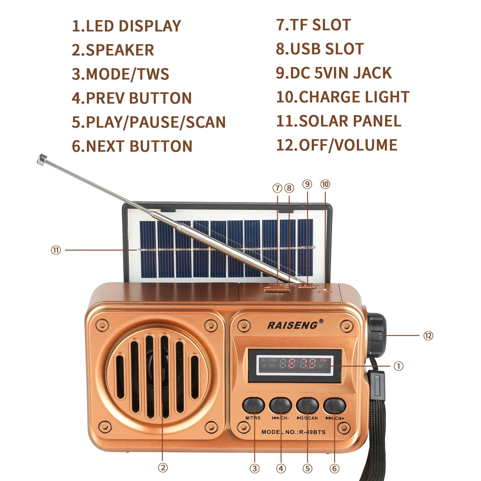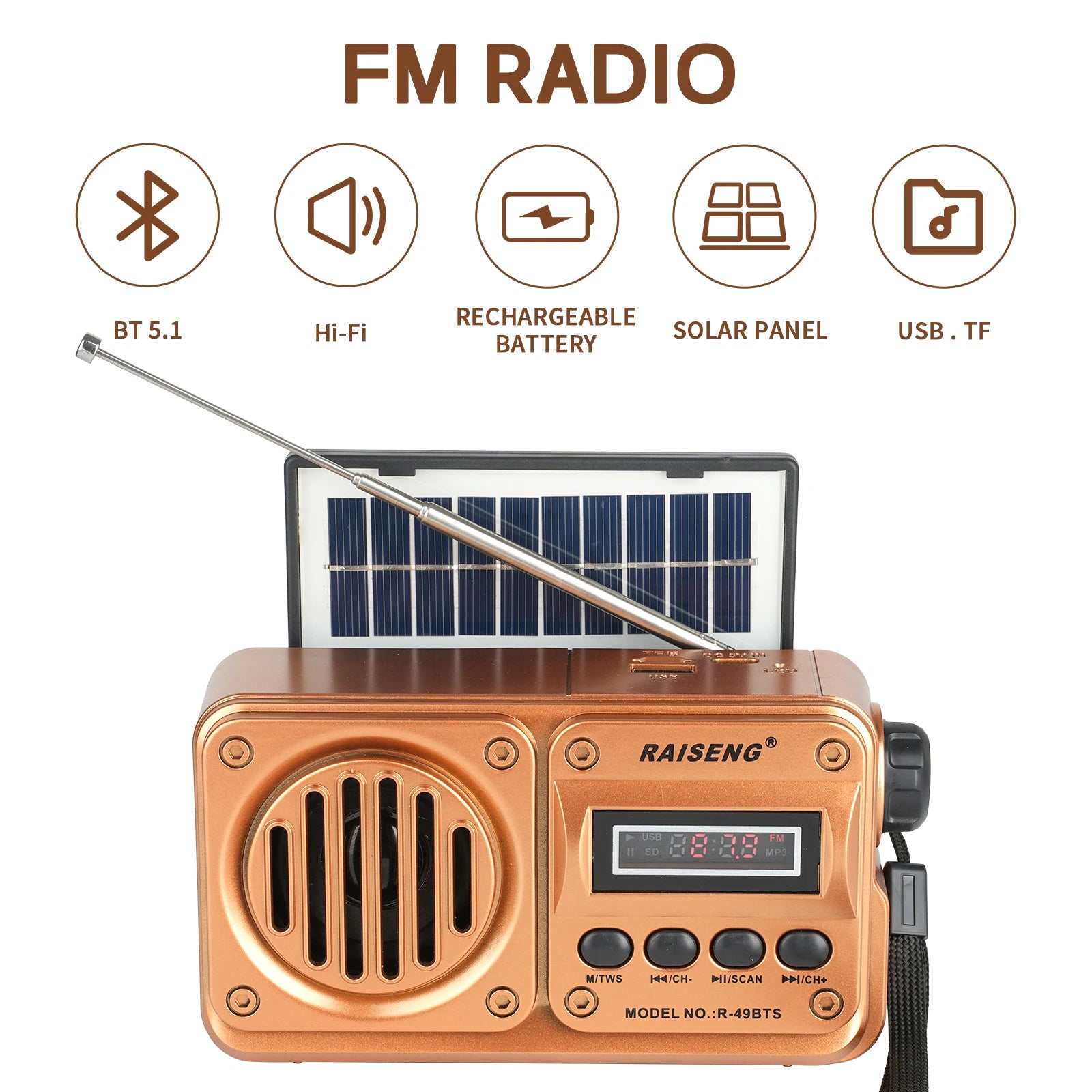 49BTS Wireless Bluetooth speaker MP3 playback FM radio Solar charging emergency radio full band high sensitivity