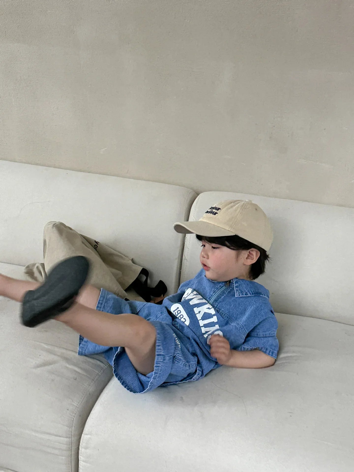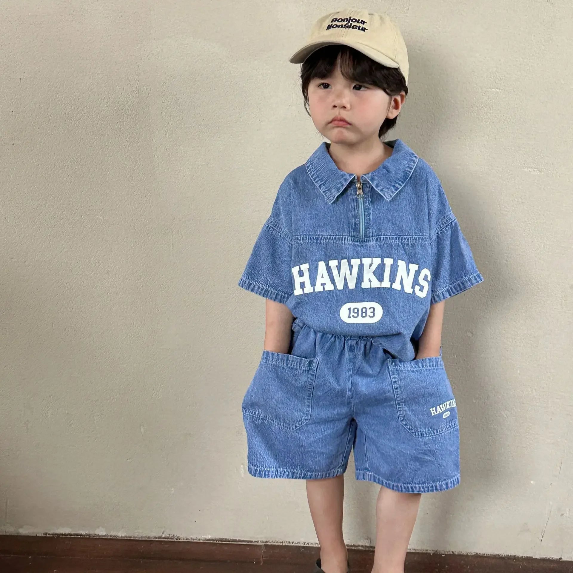 5816C Children's Clothing Set Denim Suit Summer Casual Boy's Denim Suit Letter Print Top+ Shorts Casual Two-piece Suit