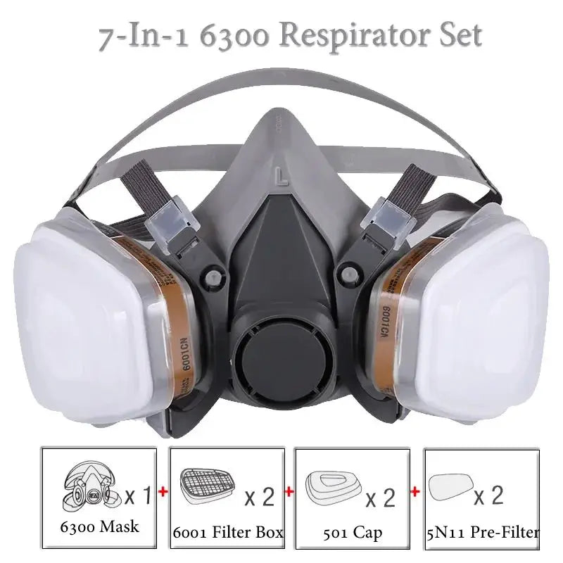 8-In-1 6300/6200 Dust Gas Mask With Safety Glasses Half Face Gas Respirator For Painting Spraying Polishing Work Safety