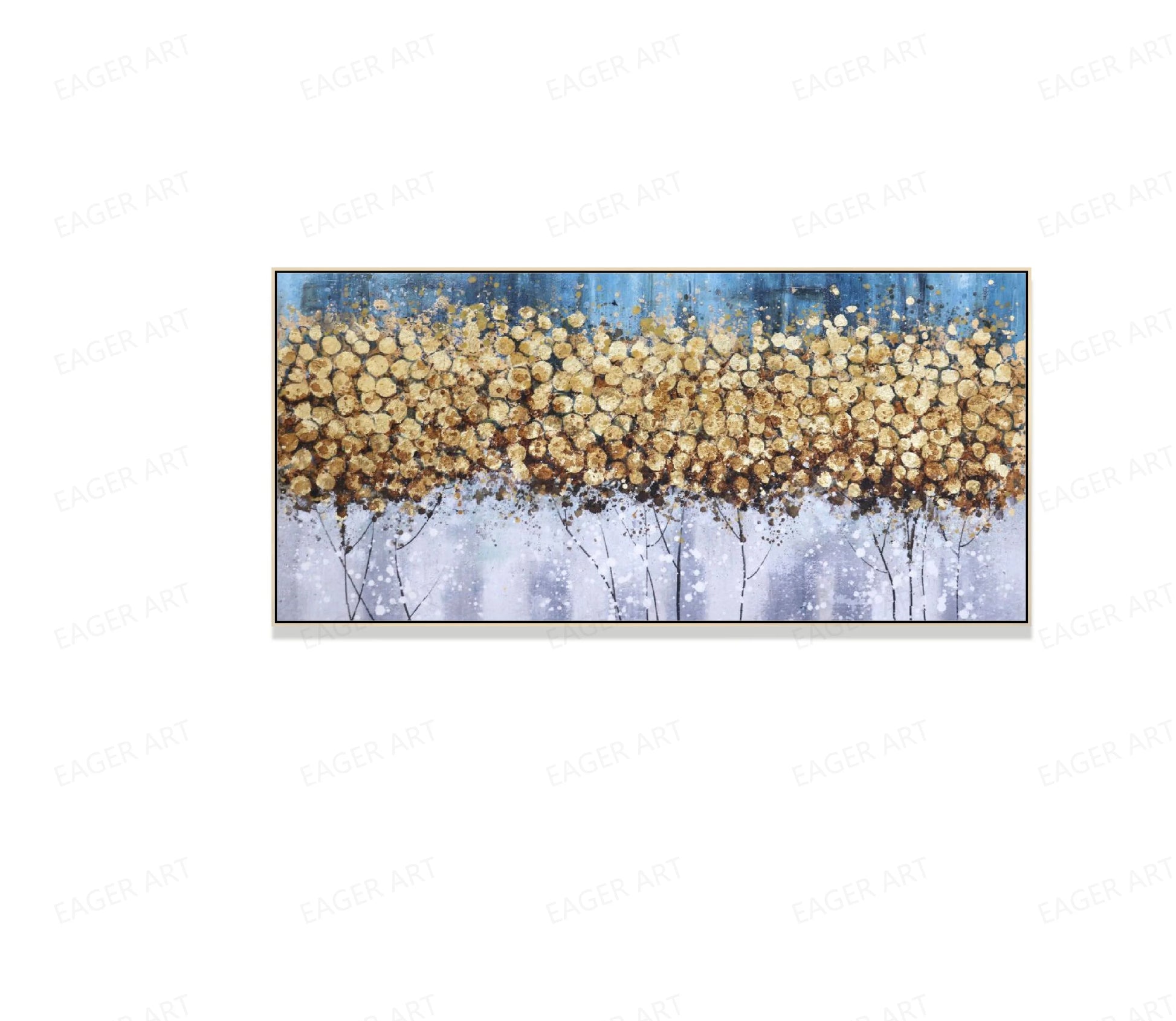Abstract Paintings and Wall Arts Gold Foil Oil Tree Painting on Canvas 100% Hand Painted Wall Decor for Living Room