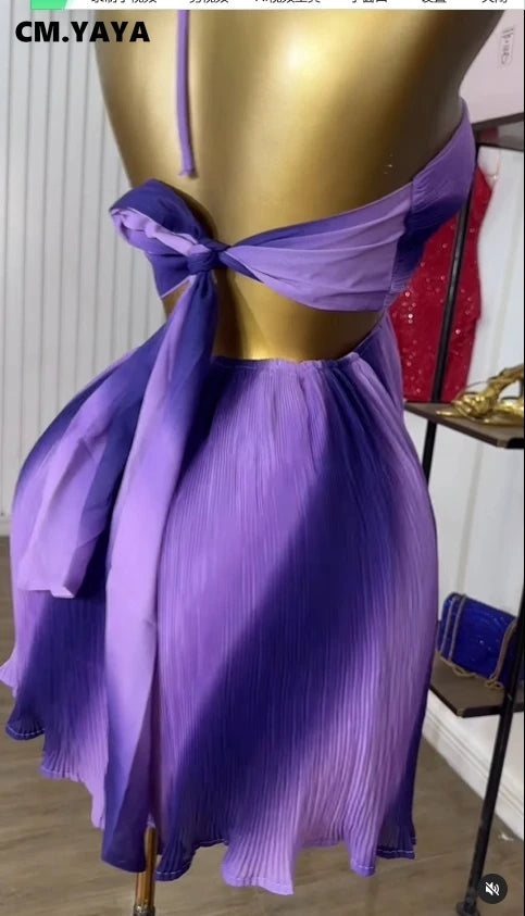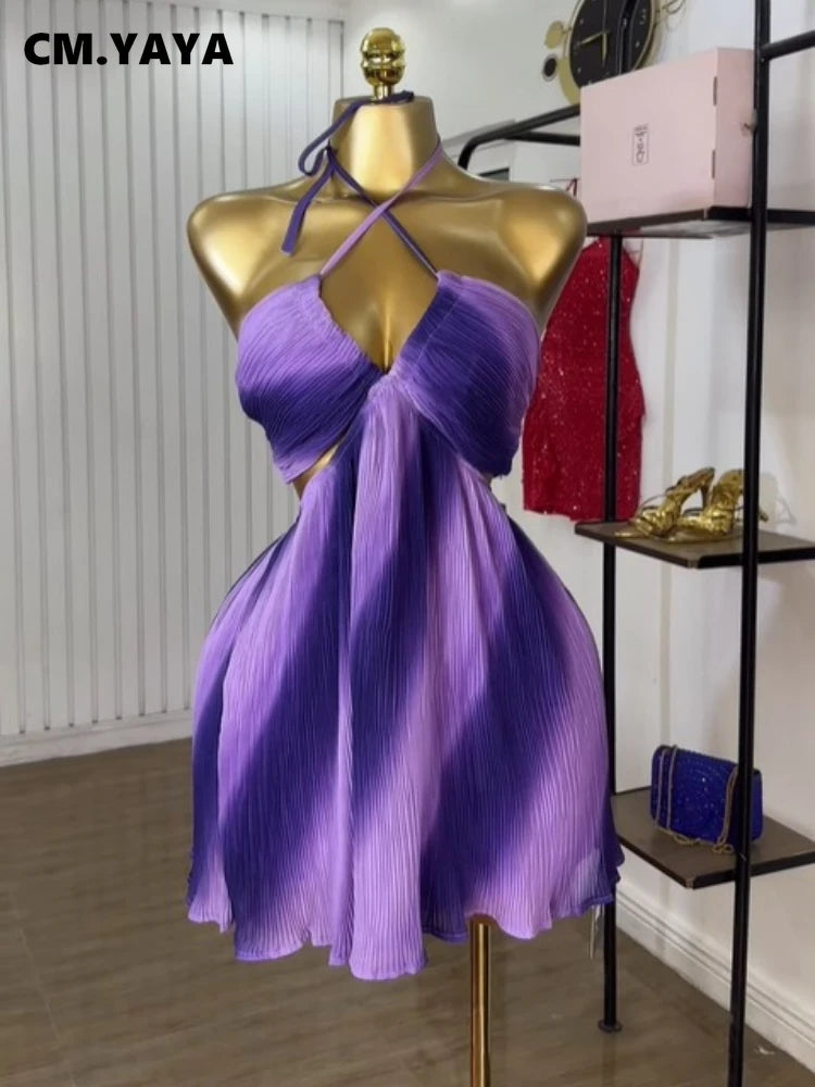 CM.YAYA Women Sleeveless Strap Gradient Printed Big Swing Dress 2025 Beach Holiday Evening Night Party Vestidos Sexy Dresses