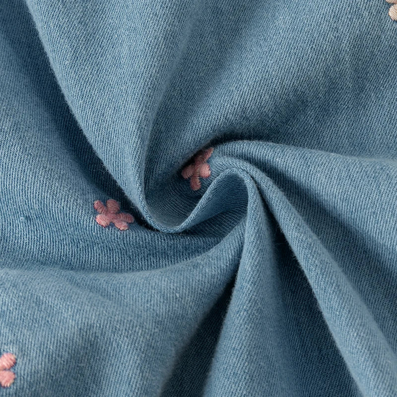 Dave Bella Girl's Embroidery Jeans Denim Pants Elastic Flower Band Spring Autumn Trousers Children's Casual Jeans DB3242342
