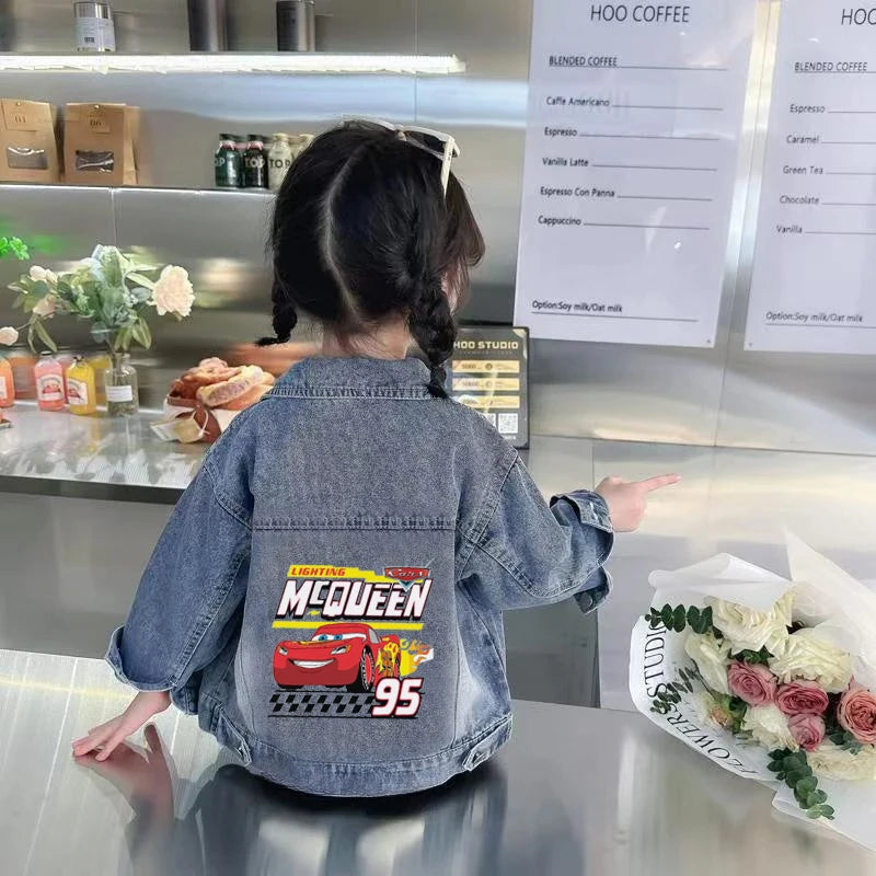 Disney Boys Girls Denim Jacket Children's Minnie Daisy Lightning Mcqueen Cartoon Long Sleeve Fashion Coat Kids Clothes Outerwear