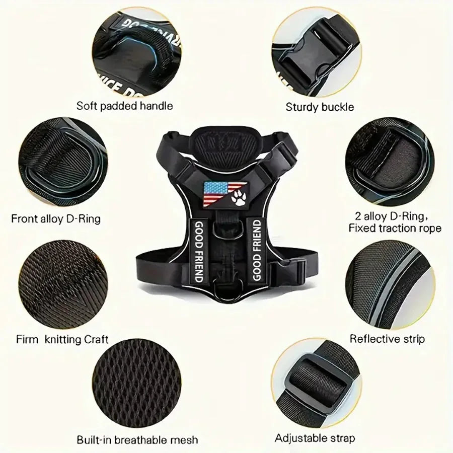 Dog Harness, Reflective Dog Vest Harness With 5PCS Patches, Adjustable Soft Oxford Pet Harness, Inner Layer Mesh, Easy T