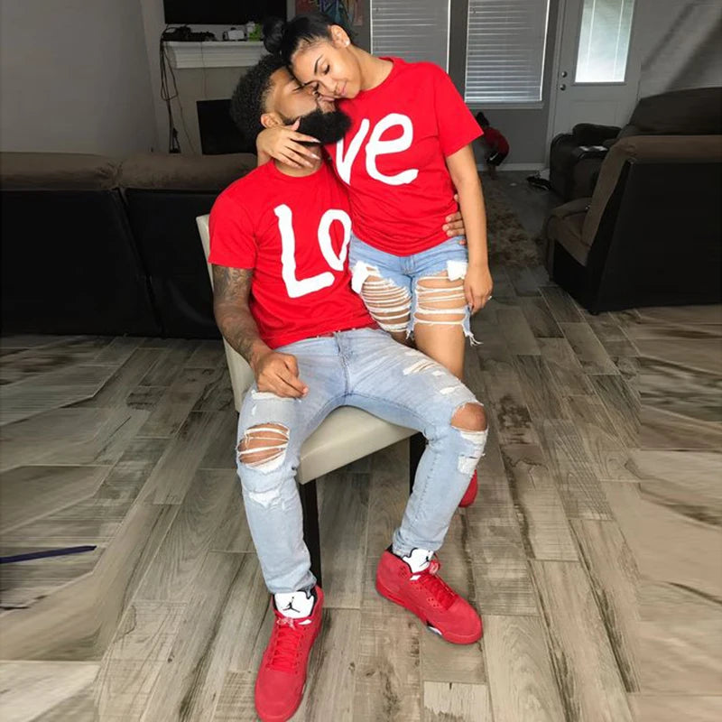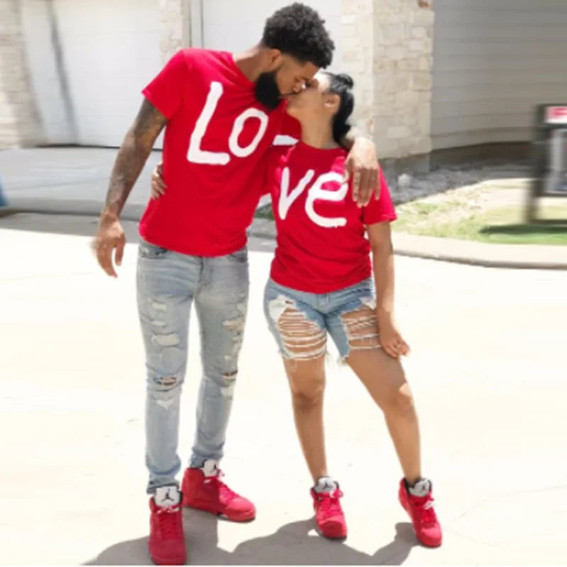 His- and- hers Couple Matching T-shirts Top Casual Red LO VE Women Men Fashion Boyfriend Girlfriend Tees Lovers tshirt Femme