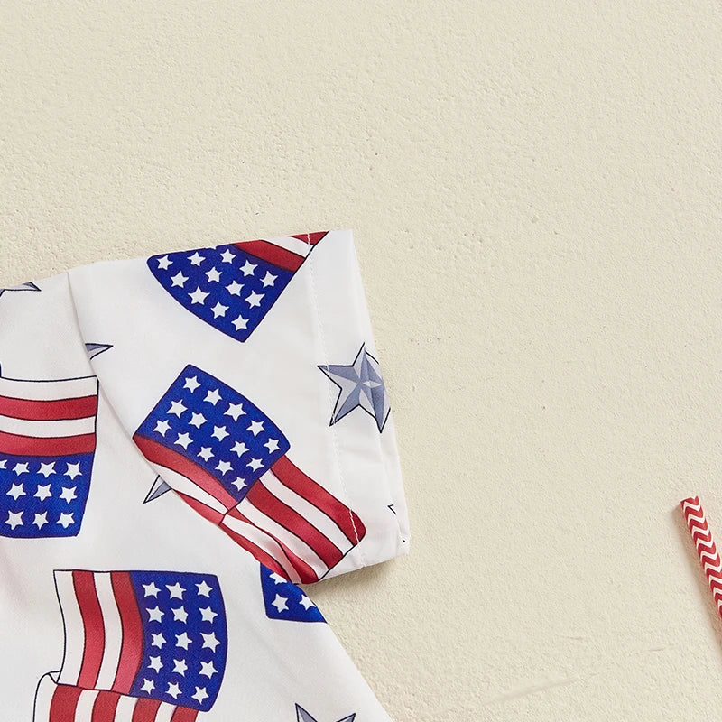 Infant Boy Independence Day Apparel Red White Blue Star Stripe Print Bowtie Top Shorts Set Kids Clothing for July 4th