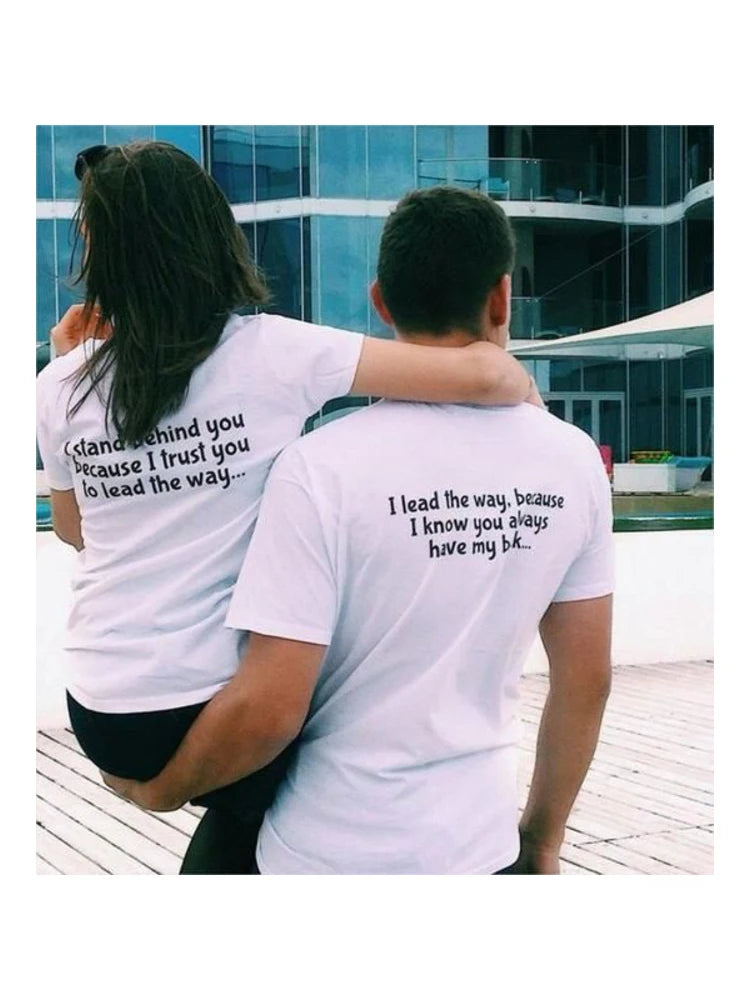 Matching Couples Shirts I Lead The Way I Stand Behind You Cute Tees Anniversary Gift Idea TShirt Set for Newlyweds or Lovebirds