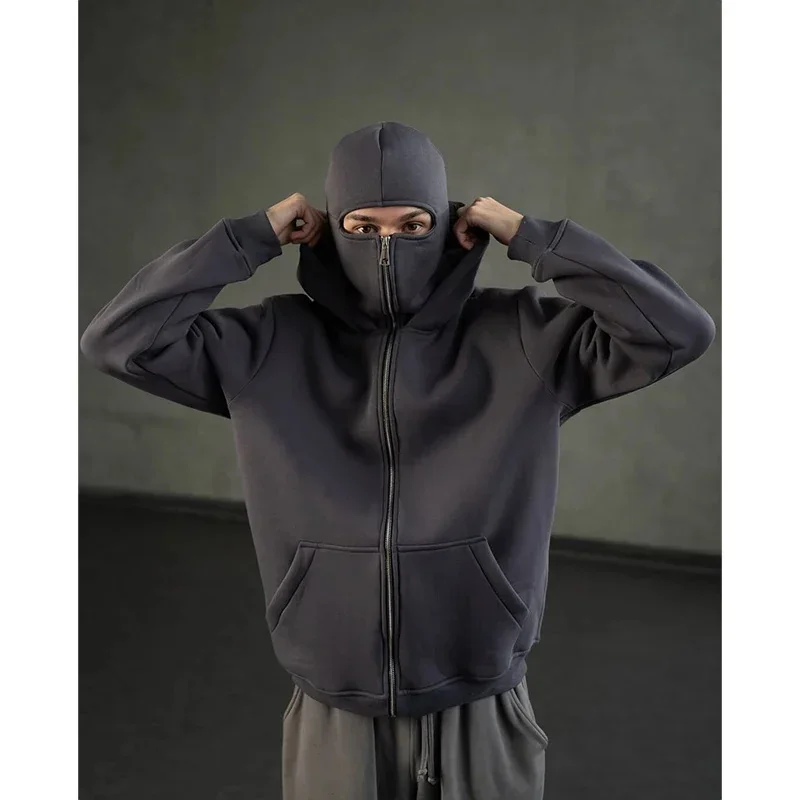 Men and women Balaclava Y2K Gothic Harajuku winter new item double hooded sweatshirt men's hooded mask zipper sportswear
