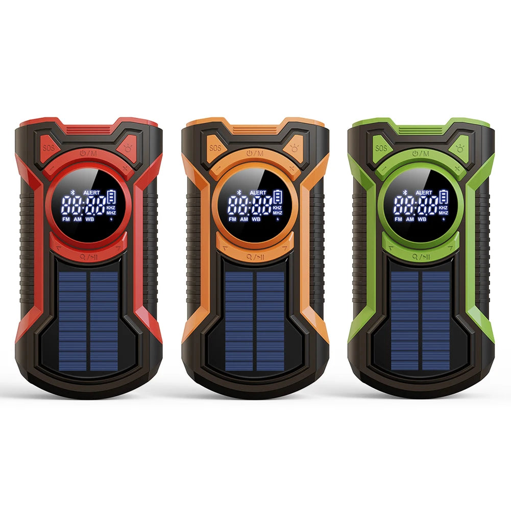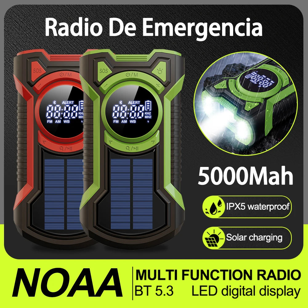 Solar Emergency Weather Radio 5000mAh Hand Crank AM/FM/NOAA Portable Emergency Radio Bluetooth5.3 SOS Alarm for Outdoor Survival