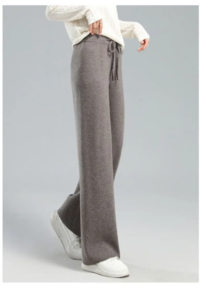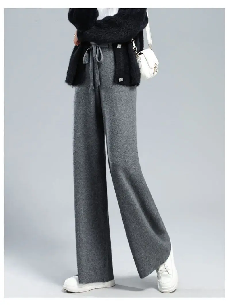 Thick Warm Knitted Casual Chic Basic Soft Elastic High Waist Women's Pants Korean Fashion Straight Ankle-Length Pants For Women