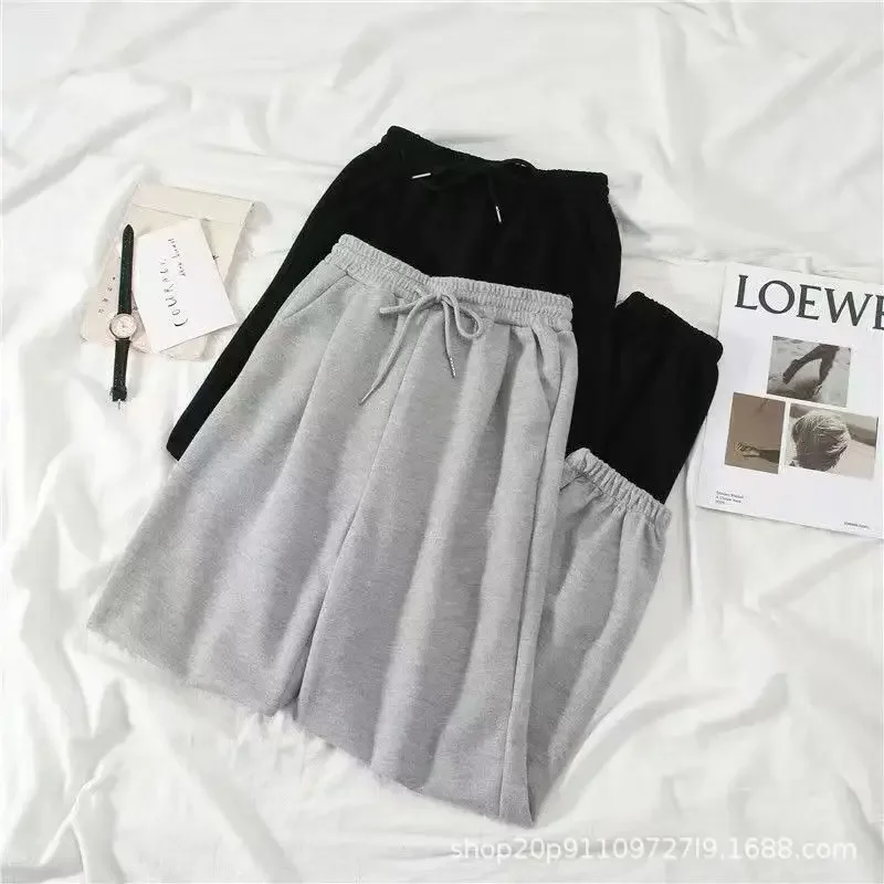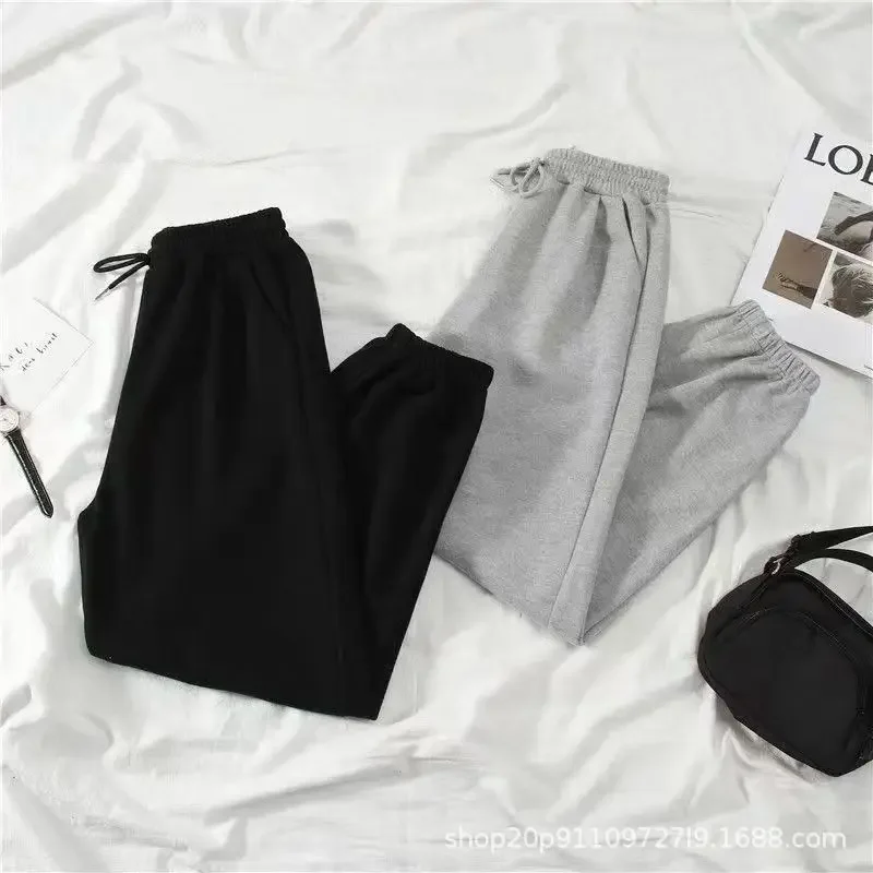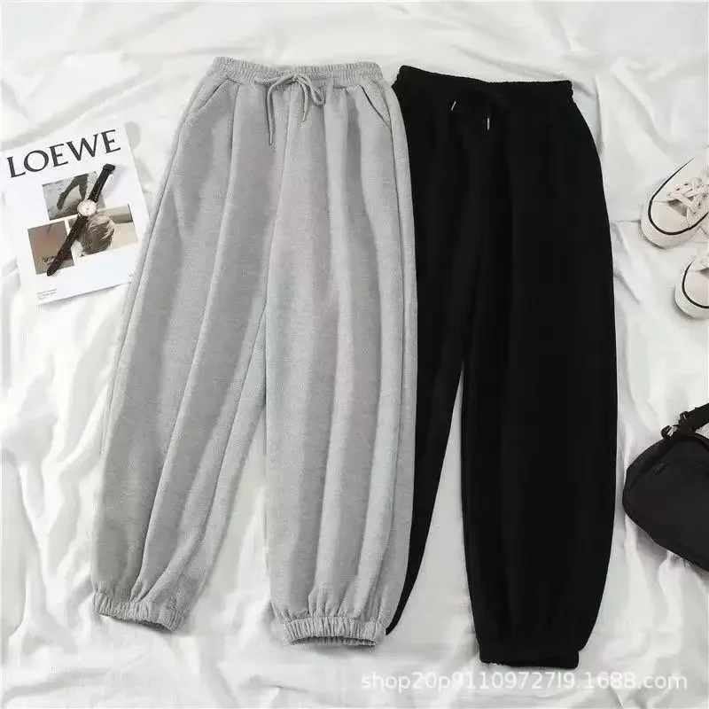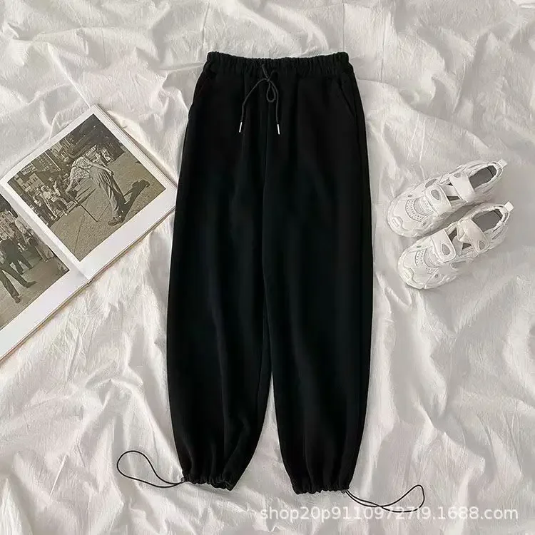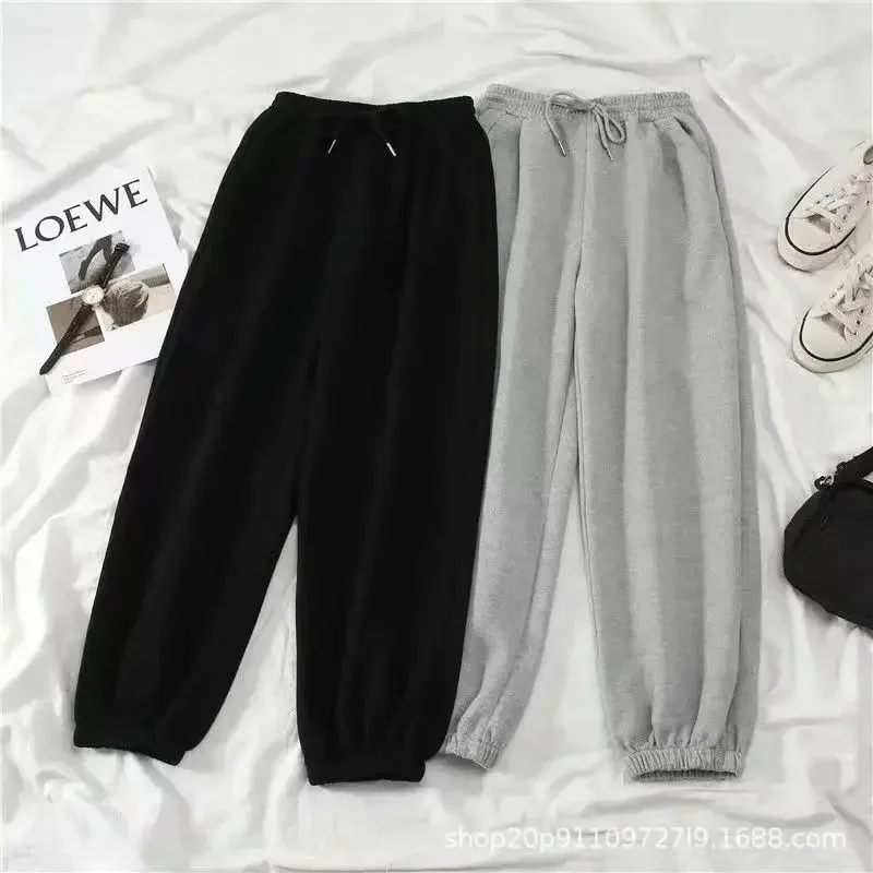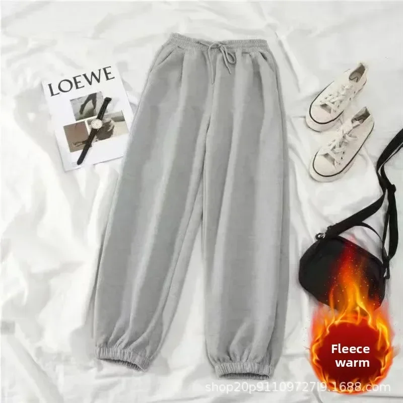 Thickened Fleece Black Sports Pants Pure Color Casual Trousers Autumn Winter New Style Slimming Harlan Pants for Women