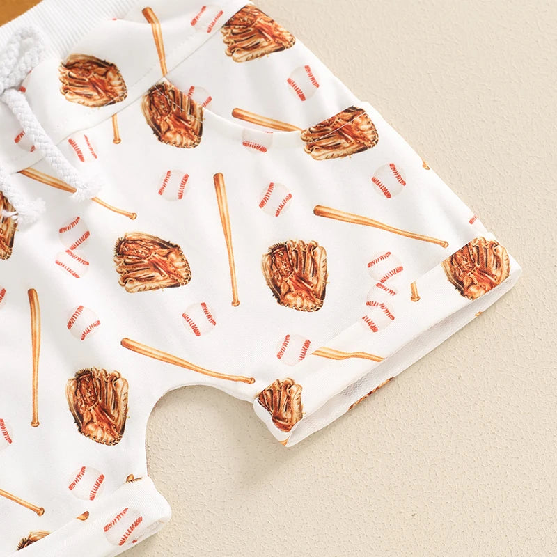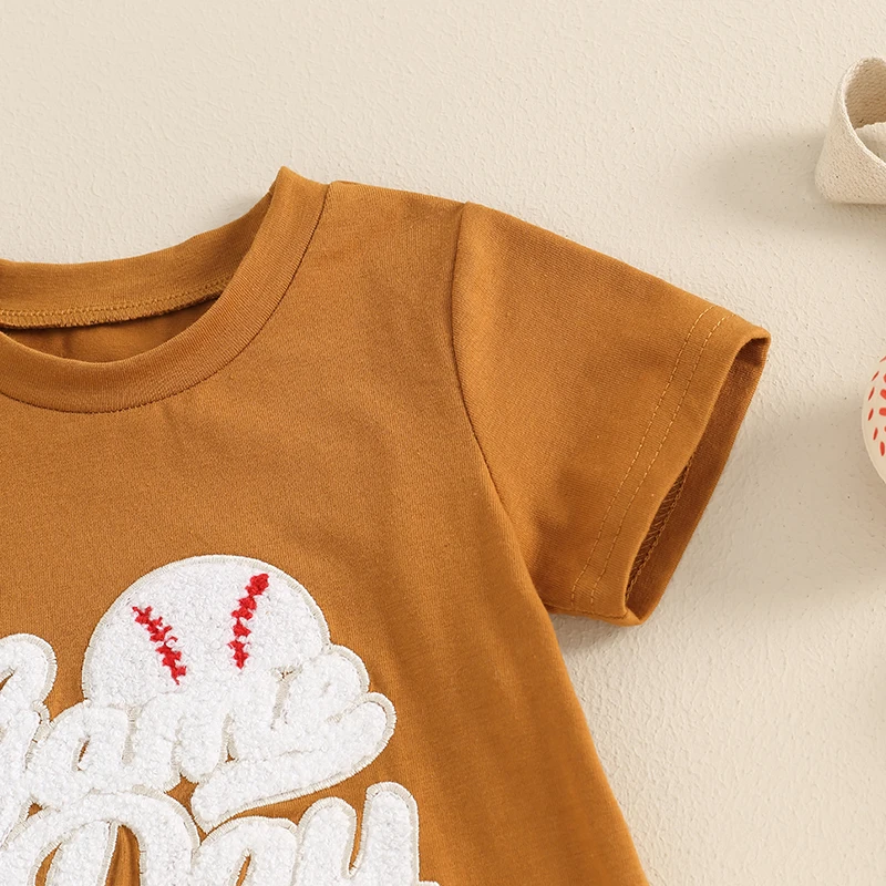Toddler Boys 2-Piece Outfit Short Sleeve Tee with Fun Embroidery and Matching Baseball Print Shorts for a Stylish Summer Look
