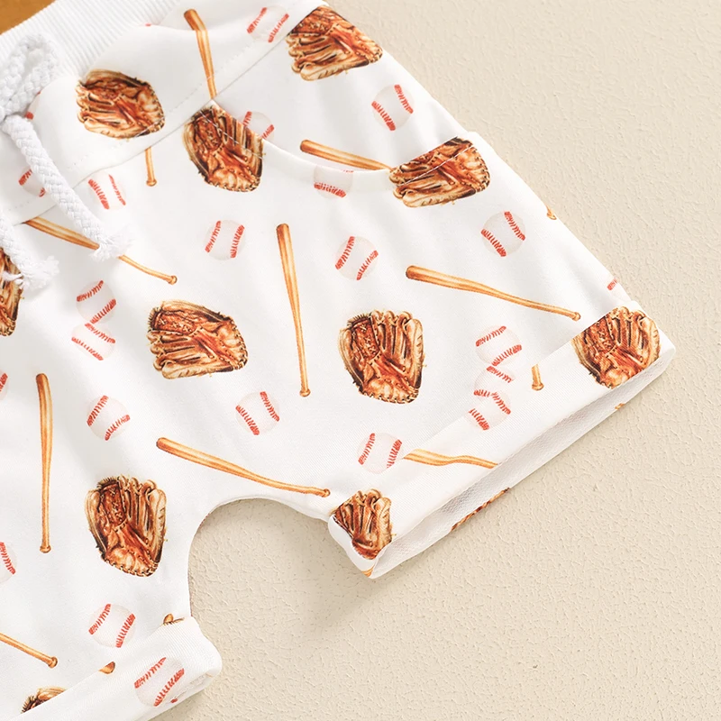 Baby Boys Shorts Set, Short Sleeve Embroidery Letters T-shirt with Baseball Print Shorts Summer OutfitHe will love this 2-piece shorts set that includes a short sleeve T-shirt that matches a pair of shorts. Easy outfit!