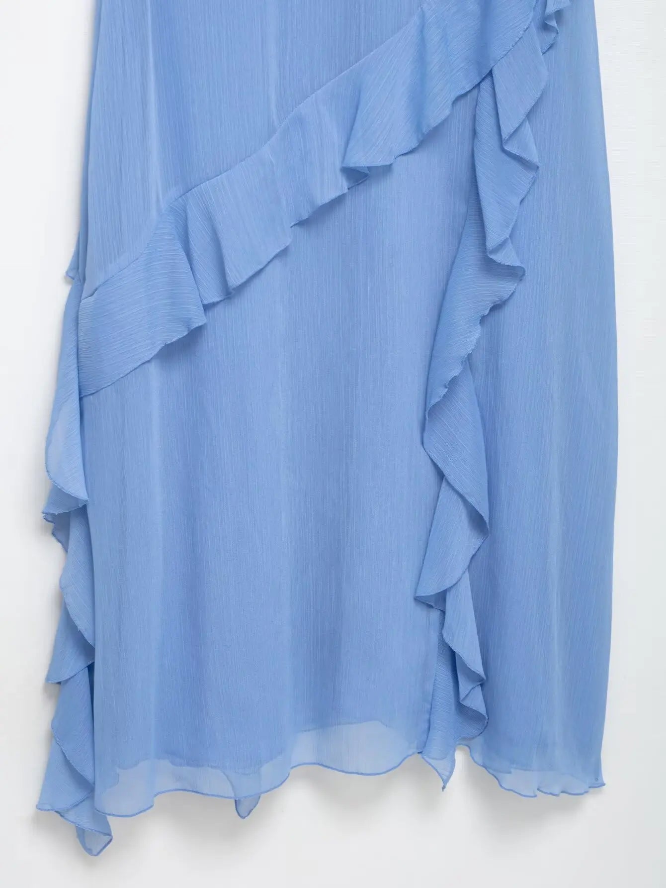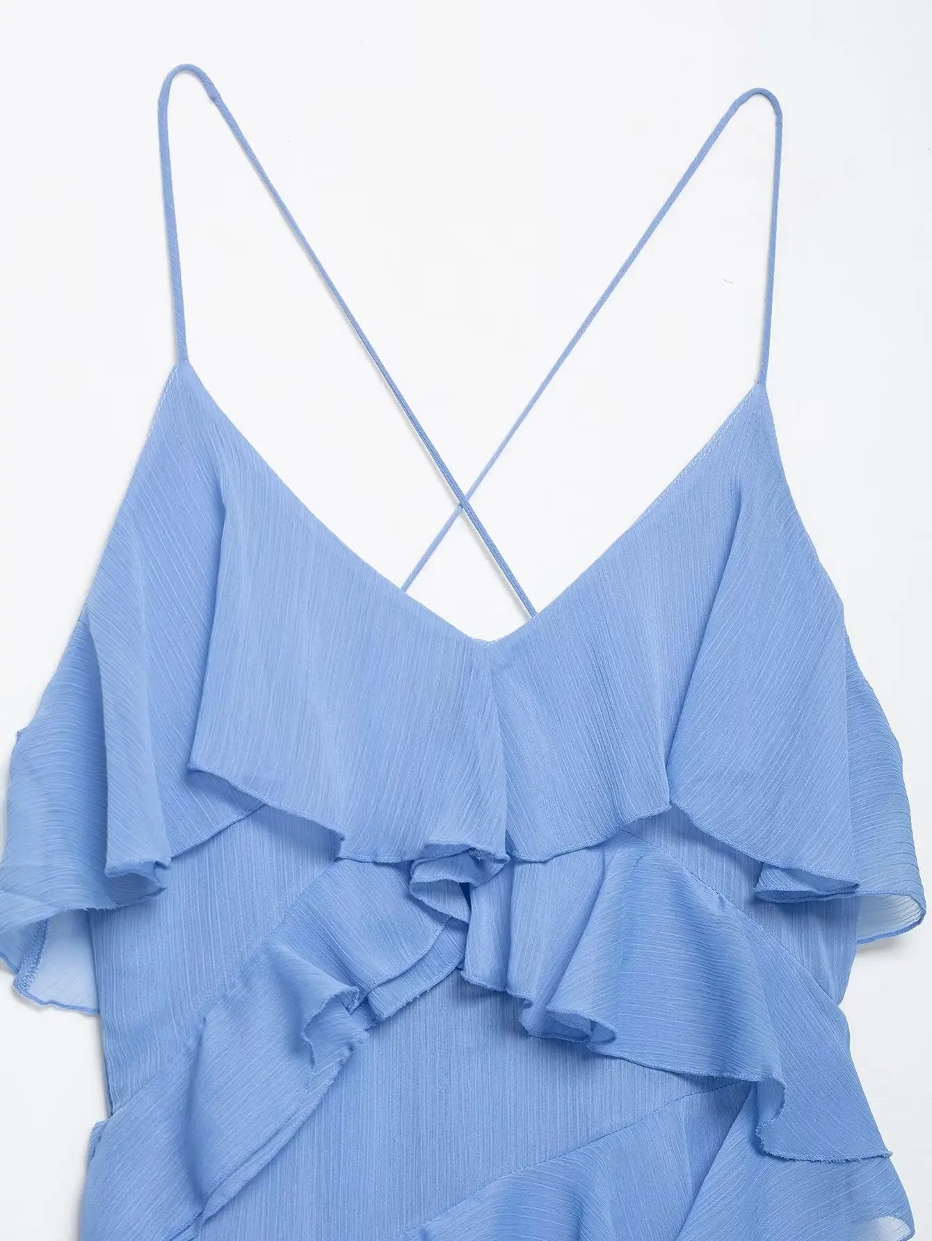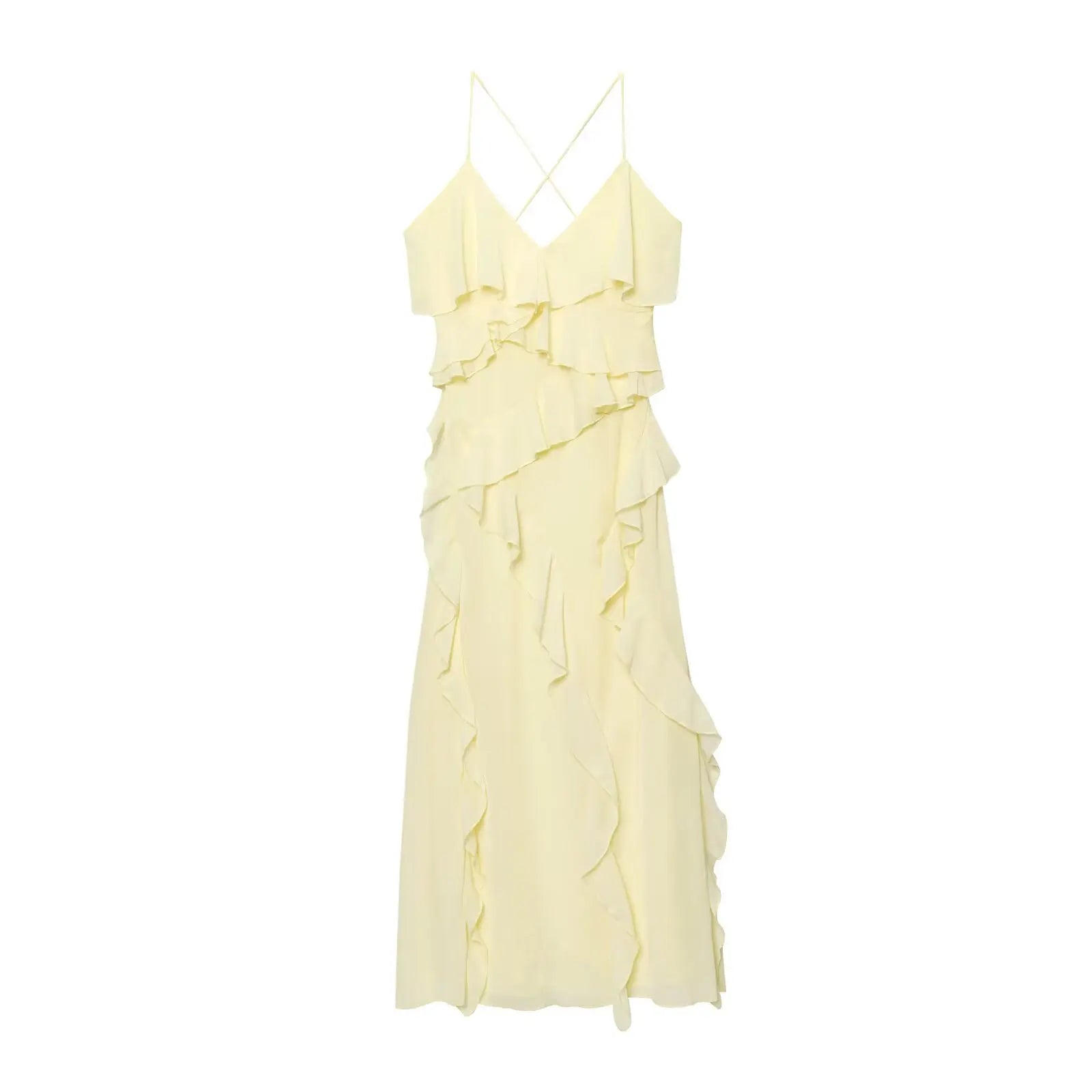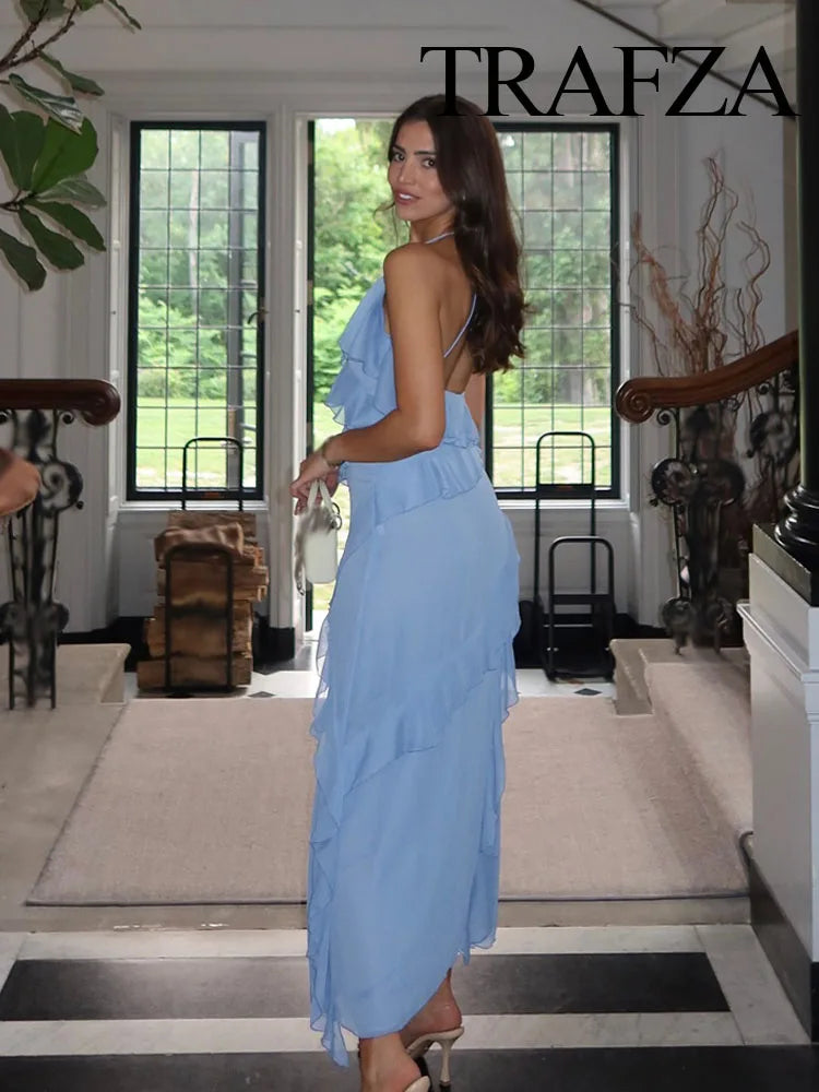 TRAFZA Woman Elegant Chic Zipper Beach Party Dress Summer Women Sexy V-Neck Sleeveless Backless Wrinkles Decorate Midi Dress