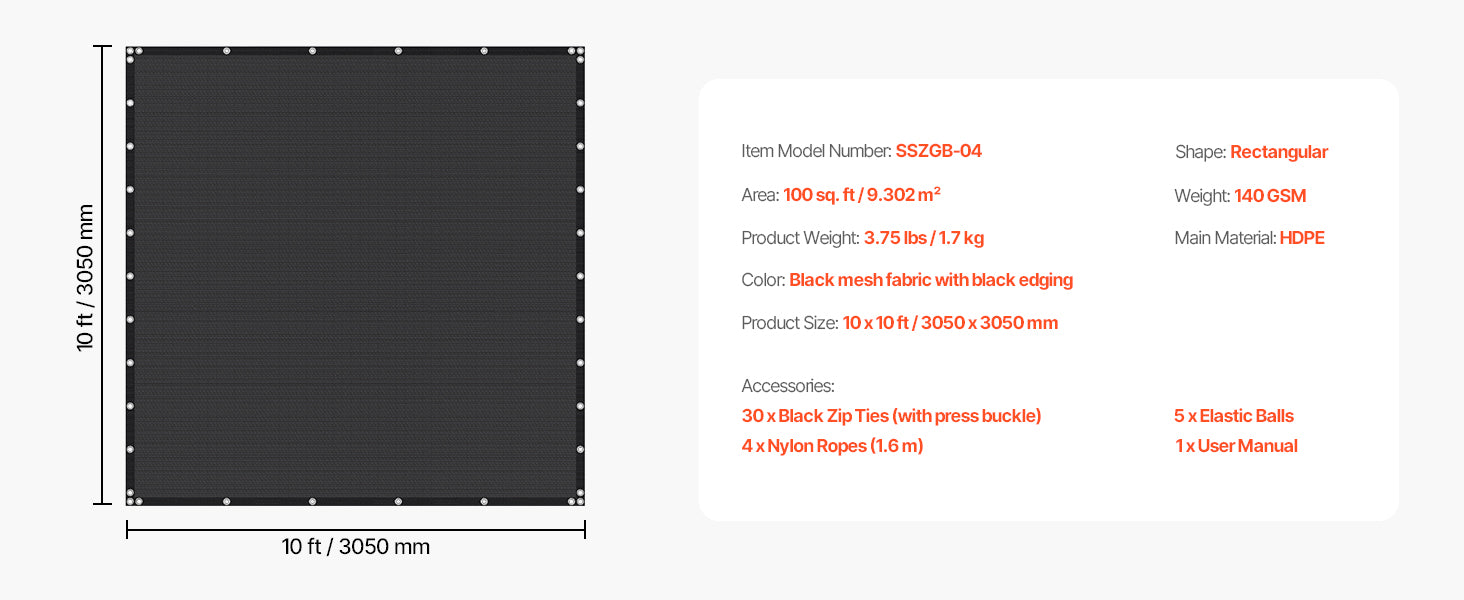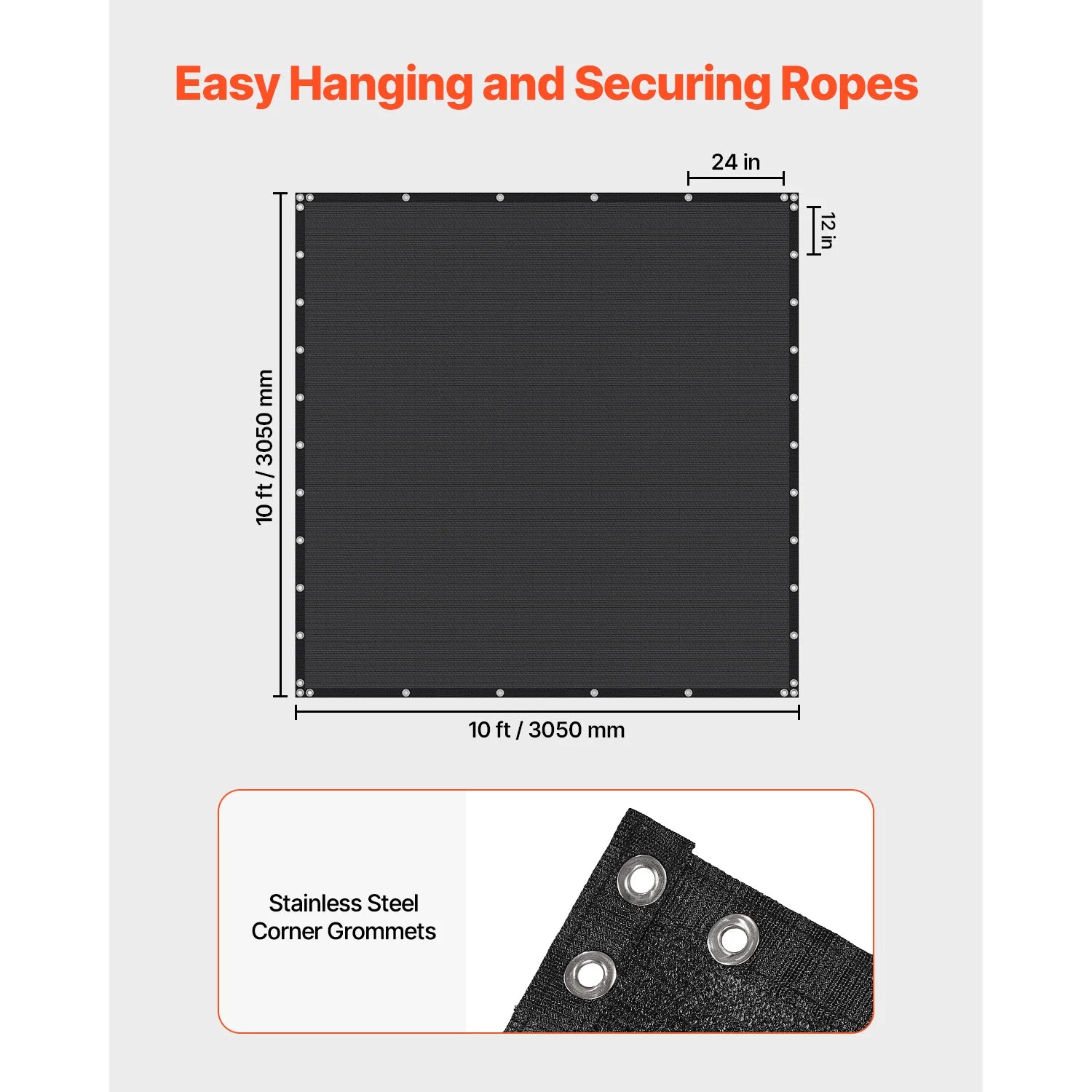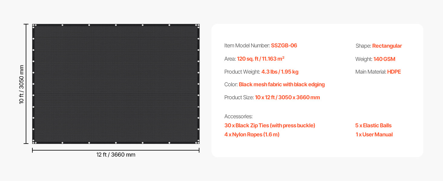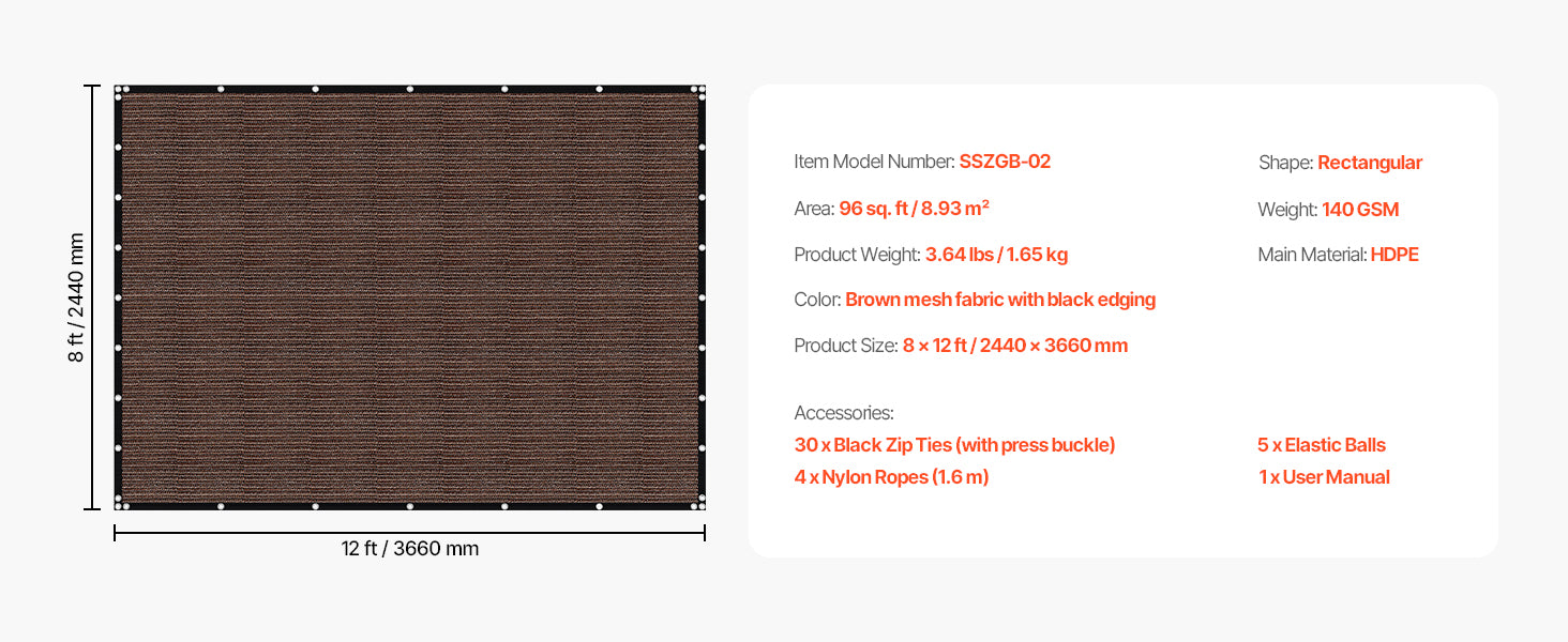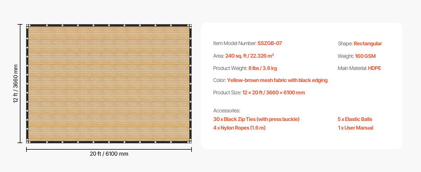 VEVOR 90% Sun Shade Cloth 10x10/12/20ft Pergola Shade Cover 140 GSM HDPE Canopy Privacy Screen for Outdoor Patio Garden Backyard