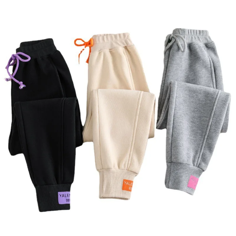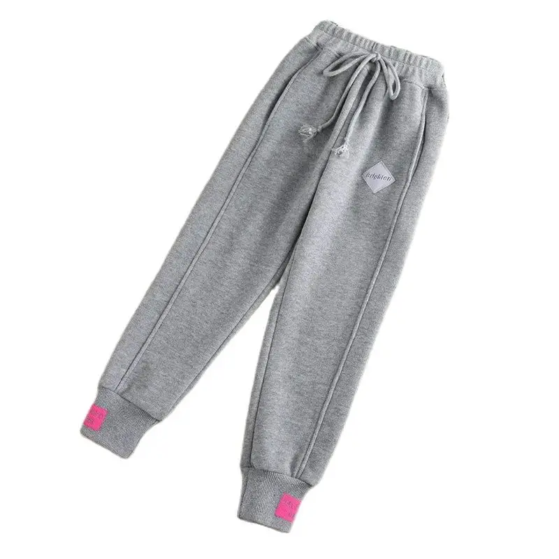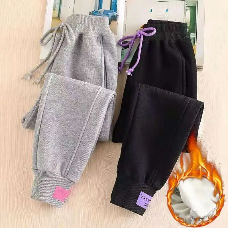 Women Winter Autumn Fleece Thicken Solid Color Ankle Length Pant Female Korean Elastic Waist Casual Streetwear Running Trousers