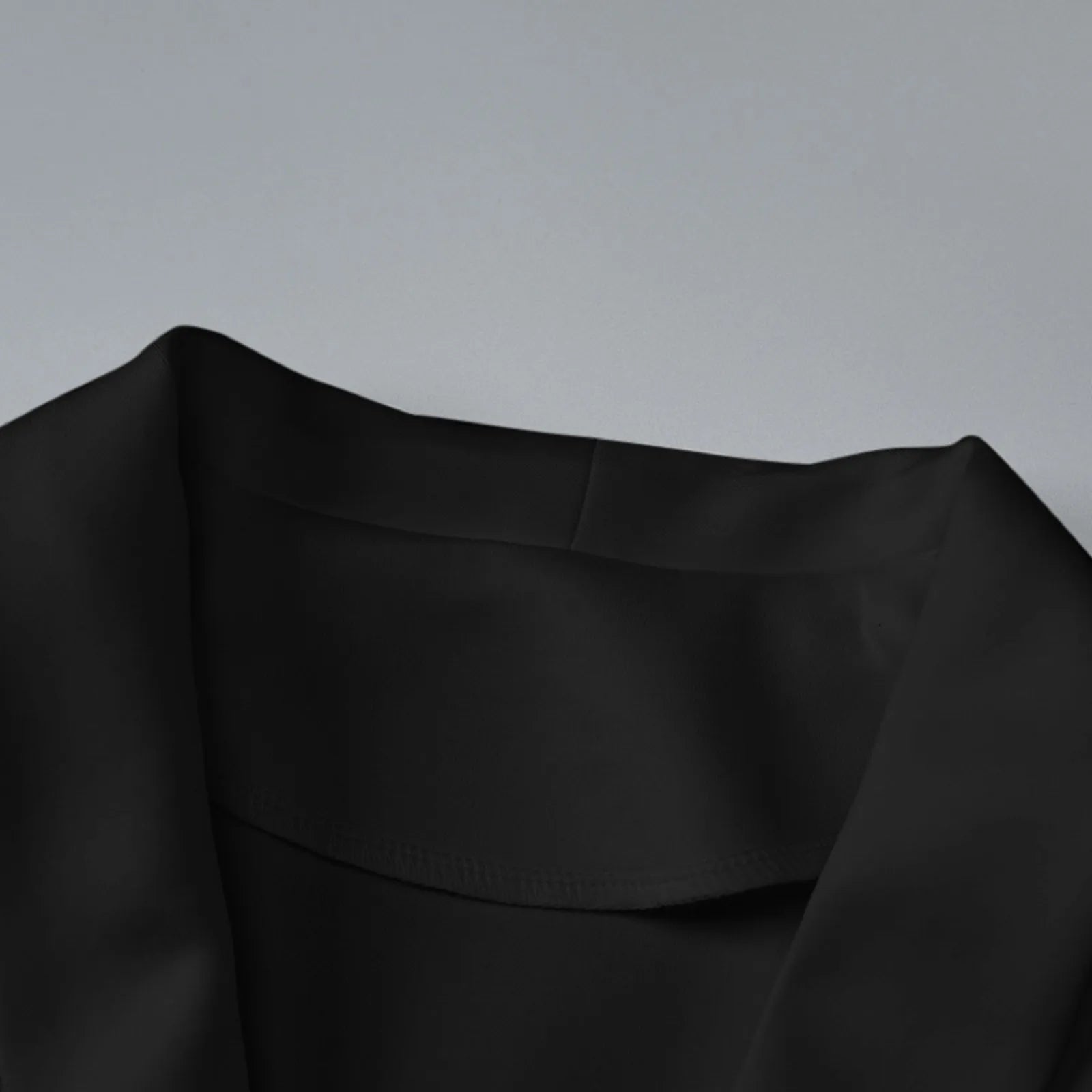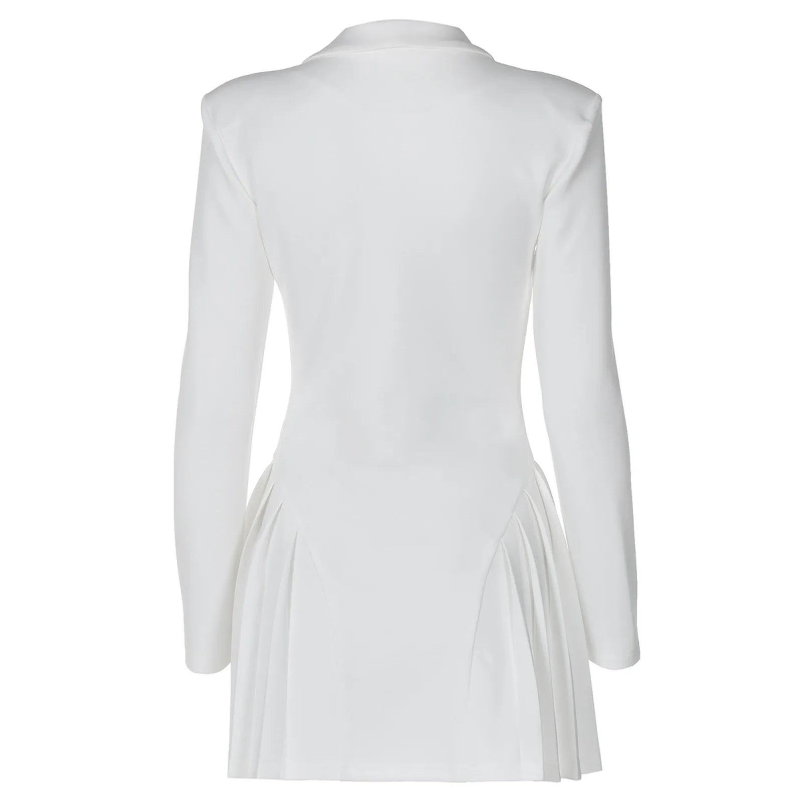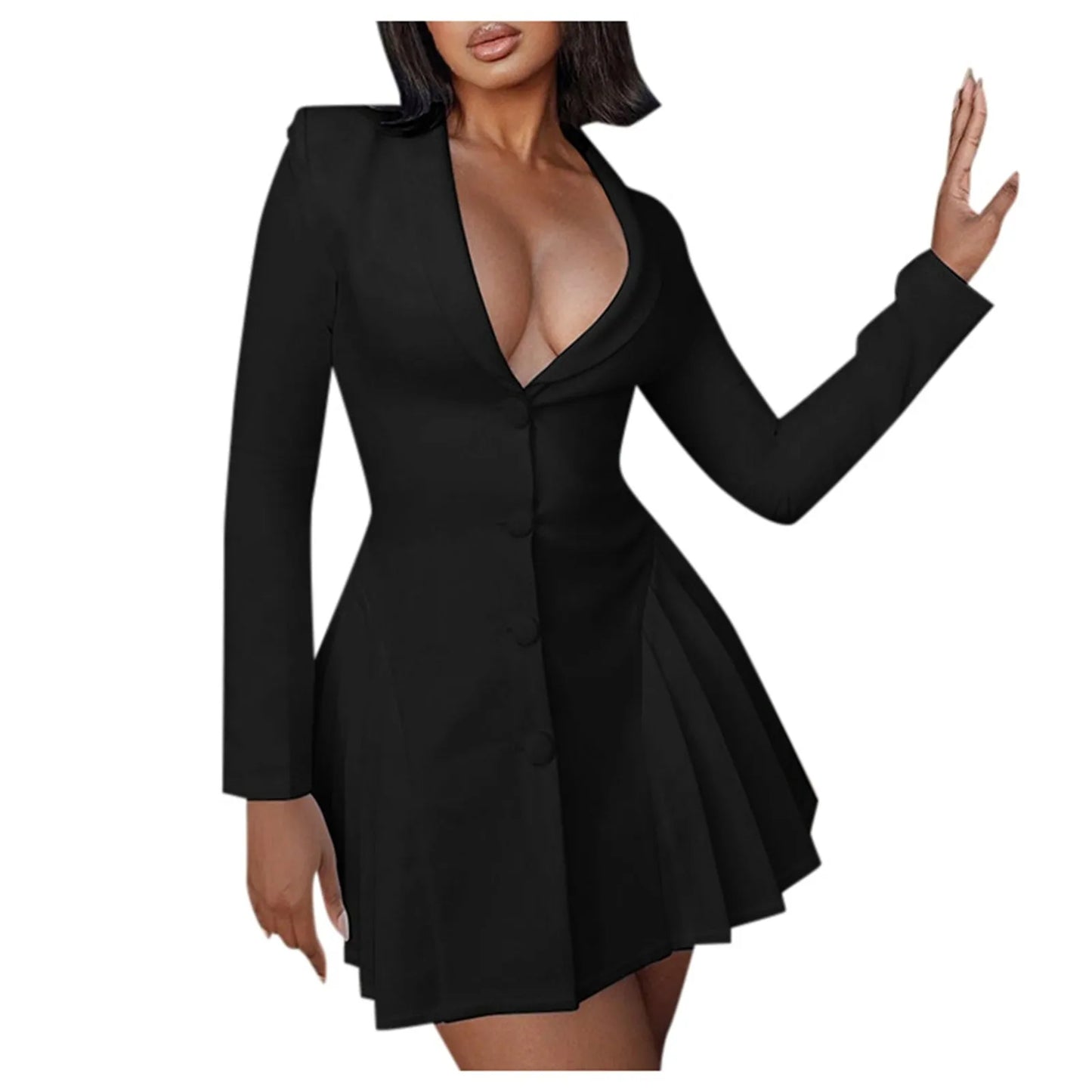Women's Suit Dress Ladies Solid Color Sexy Button Deep V suit Collar Cardigan Mature Woman Style Short Ruffle Edge Dress