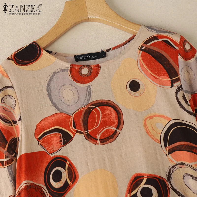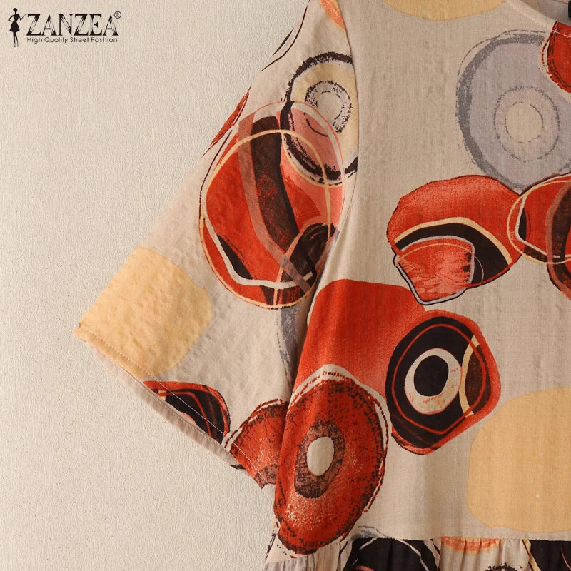 ZANZEA Short Sleeve Printing Maxi Dresses Casual Vacation Woman Bohemian A-line Robes Femme 2025 Summer Loose O-Neck Long Dress